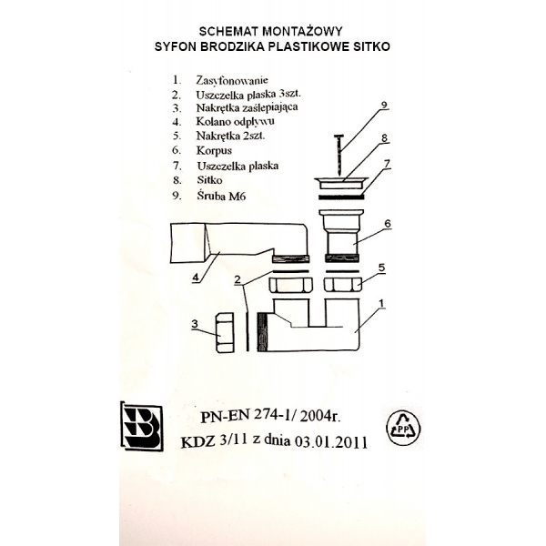 Syfon brodzikowy do prysznica. Średnica otworu rury 50mm