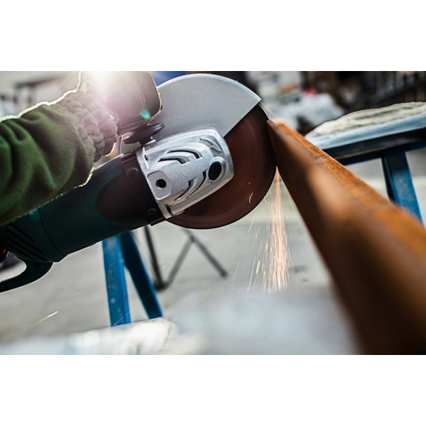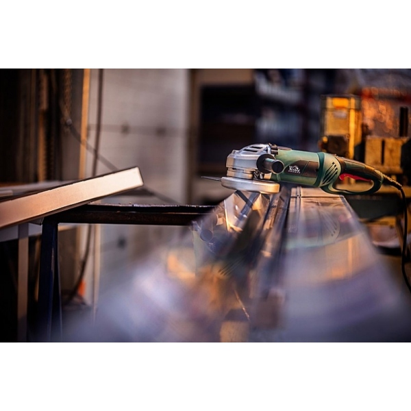 Do kątówki możemy zamontować tarcze 230mm, a także 180mm dzięki czemu uzyskujemy bardzo szeroki wachlarz możliwości cięcia czy szlifowania.