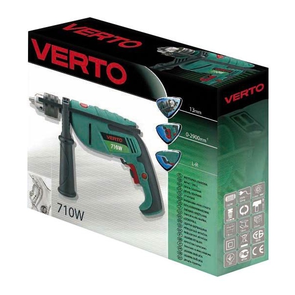 Wiertarka udarowa 710W Verto o prędkości obrotowej 0-2900 obr/min.