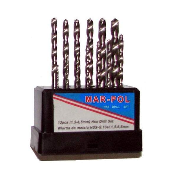 Wiertła HSS do metalu 1,5-6,5mm MAR-POL -Zestaw 13 szt.