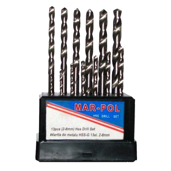 Wiertła HSS do metalu 2,0-8,0mm MAR-POL -Zestaw 13 szt.