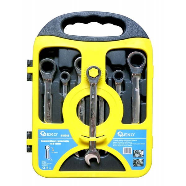 Klucze płasko-oczkowe z grzechotką 7szt (8-19mm)