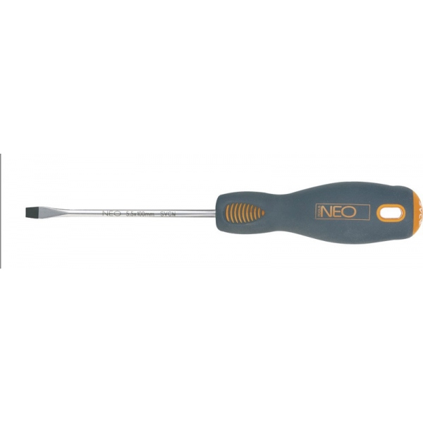 Wkrętak płaski NEO-TOOLS. Dostępne rozmiary: 3x73mm, 4x100mm, 5,5x100mm, 5,5x200mm, 6,5x150mm, 8x200mm
