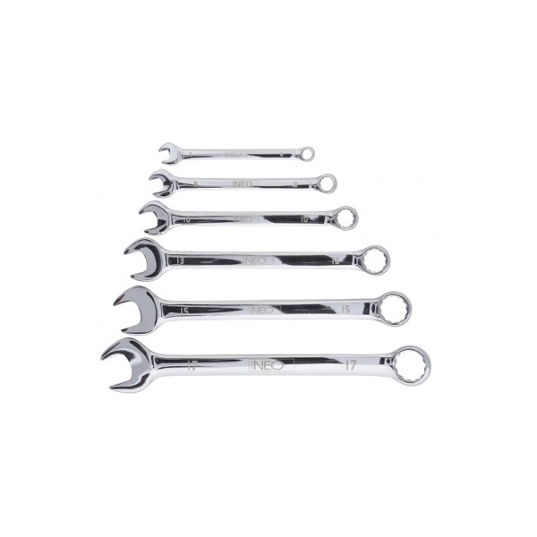 Komplet kluczy plasko-oczkowych NEO-TOOLS 6 szt. Rozmiary: 6,8,10,13,15,17 mm.
