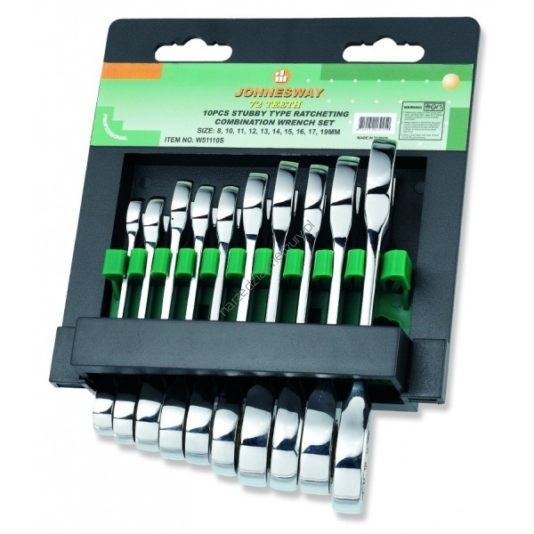 Komplet kluczy płasko-oczkowych z grzechotką- 72 zęby, JONNESWAY 10szt.