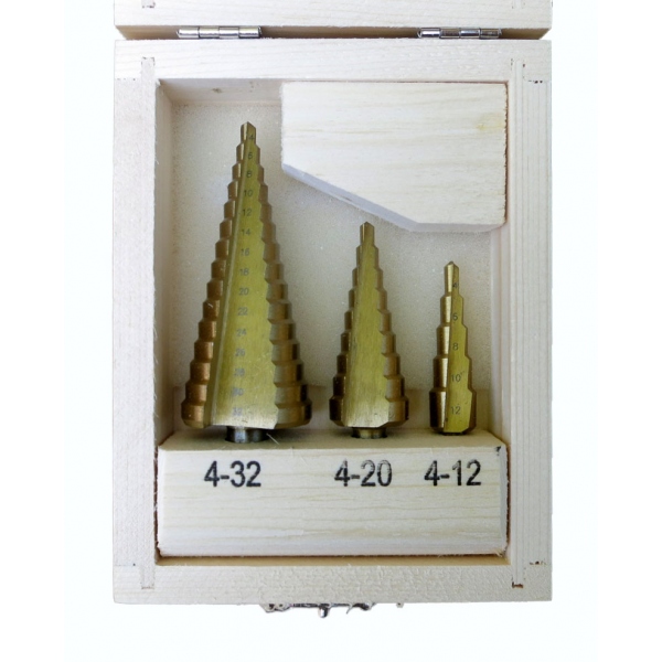 Wiertło stożkowe tytanowe do metalu (4-12-20-32 mm)- 3szt.