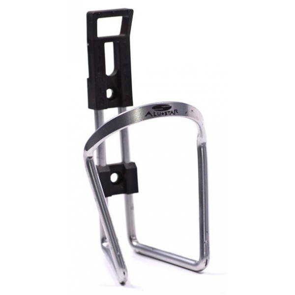 Koszyk bidonu ALU-TAR. Kolory: aluminium, czerwony, niebieski, czarny.